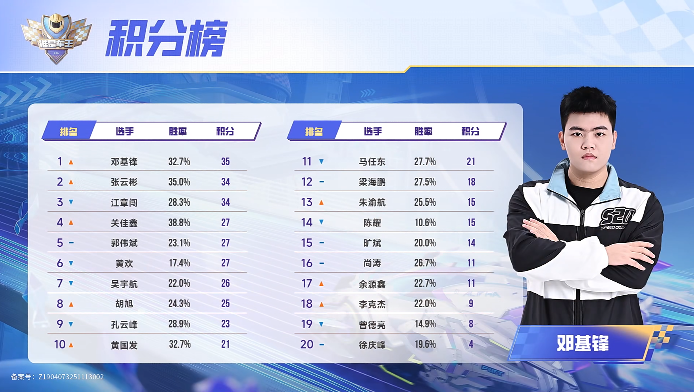 标题: 车王S20晋级赛第三轮 邓基锋登顶积分榜榜首