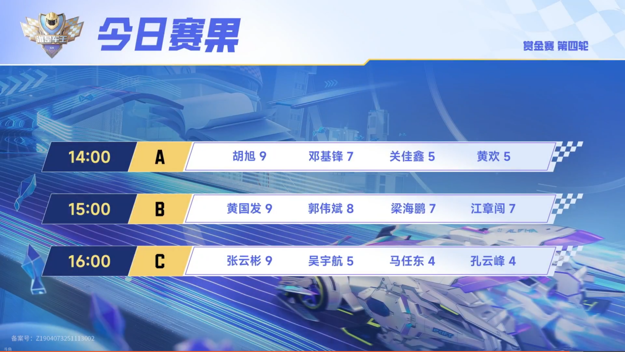 风云骤起,胜者为王!谁是车王S20赏金赛第四轮于11月22日下午14:00火热开启,经过三组激烈比拼,胡旭、黄国发和张云彬分别拿下小组第一。快来和小橘子一起围观今日战况吧!