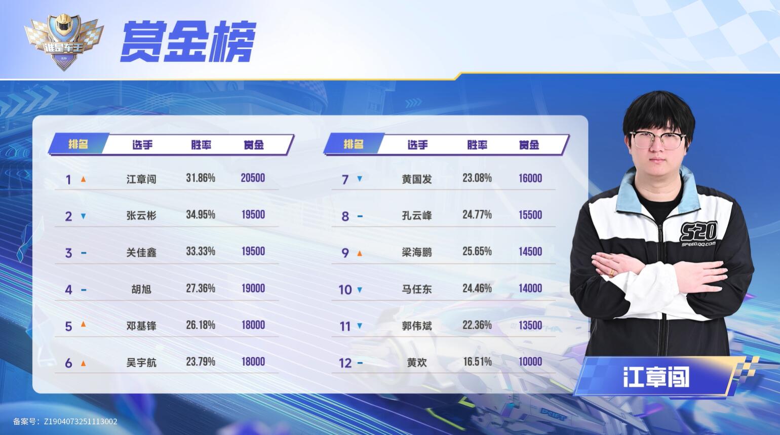 标题: 车王S20赏金赛第六轮 江章闯重回赏金榜榜首 [打印本页]