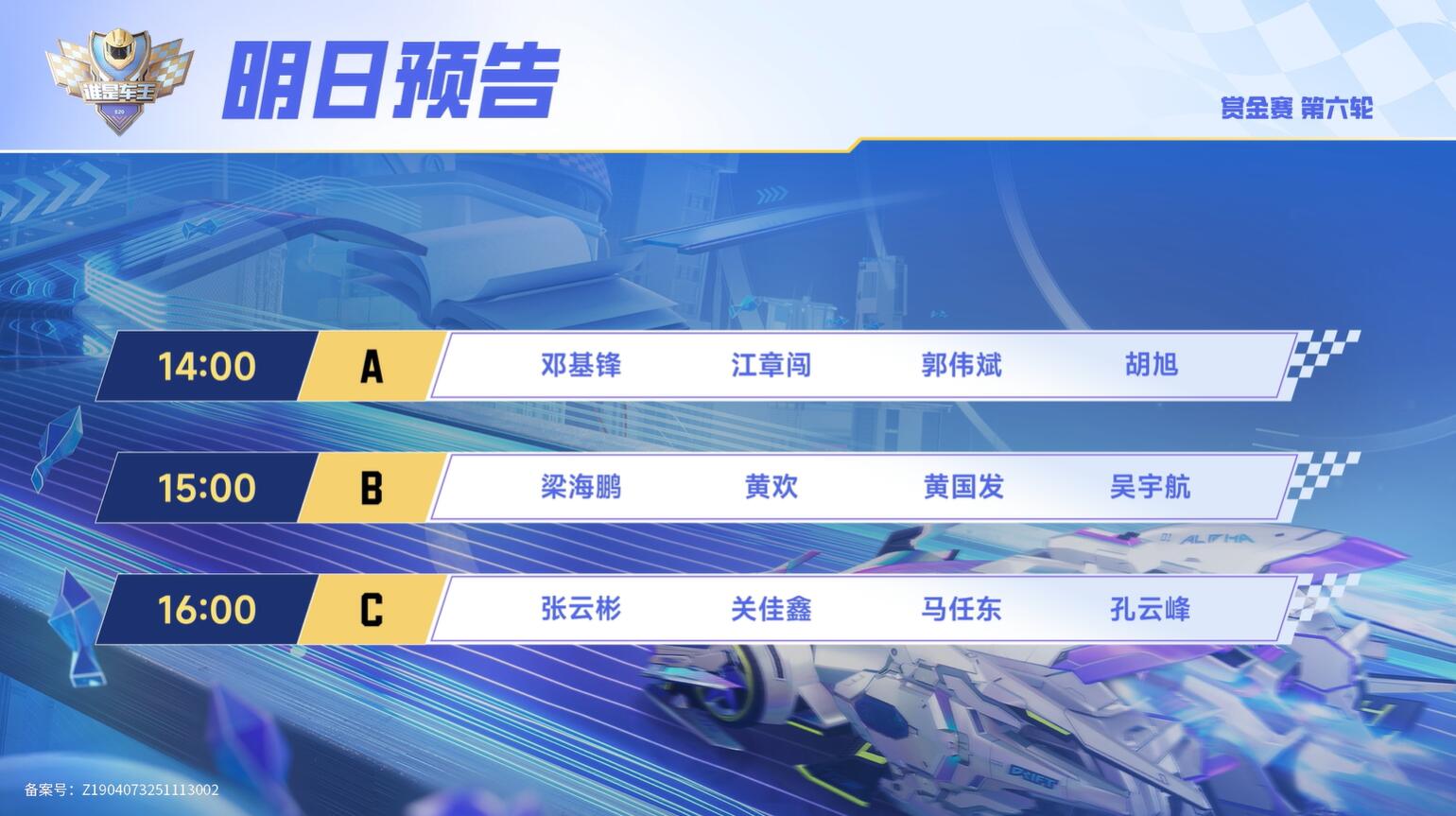 生而为赢,分秒必争!谁是车王S20赏金赛第六轮于11月26日14:00正式打响。历经三组激烈的角逐,最终吴宇航、邓基锋、关佳鑫三名选手脱颖而出,各自夺得小组第一。接下来,就由小橘子带领大家重温本场比赛的高光时刻!