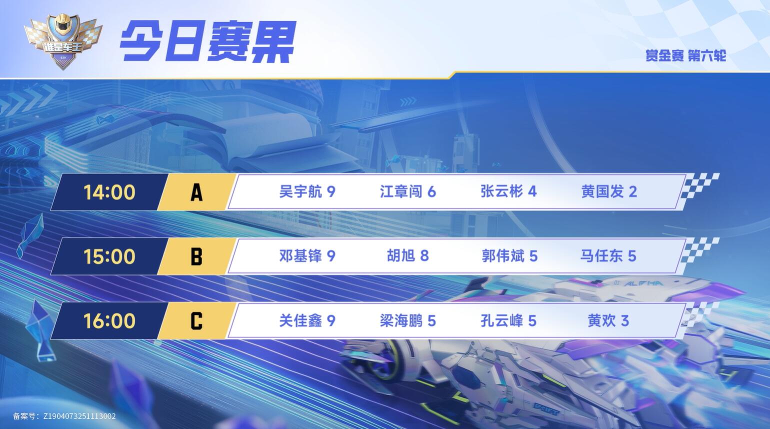 赏金赛第六轮赏金赛果
